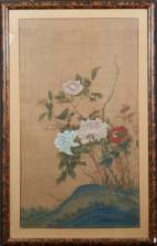 Chinese schildering op zijde: bloemen, niet gesigneerd, 90 × 52 cm