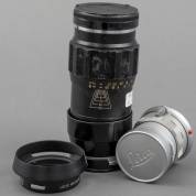 Twee Leica objectieven: Leitz Wetzlar Summicron 1:2/50, met uv-filter en zonnekapje, serienummer 2108777 -beschermdop op achterzijde ontbreekt, gebruikssporen-, en Leitz Wetzlar Tele-elmar 1:4/135, met uv-filter en zonnekapje, serienummer 2189926 -gebruikssporen-, beide eind jaren '60