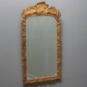Spiegel in goudkleurige lijst met rocailles en voluten, Louis Quinze -defect aan lijst-, 124 × 61 cm