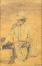 Cole Morgan (1950), cowboy, potlood op papier, r.o. gesigneerd en gedateerd '77, 25 × 15 cm
