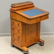 Mahonie davenport, het blad met blauw leder bekleed, daaronder een esdoorngefineerd interieur, Engeland, 19e eeuw -lichte gebruikssporen-, 86 × 54 × 56 cm
