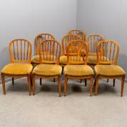 Acht iepen stoelen met olijfgroene velours bekleding en gedraaide spijlen in de rug, mogelijk uitvoering Albert Eeltjes (1751-1836), circa 1800, 93 × 49 × 48 cm