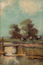 Jan Hillebrand Wijsmuller (1855-1925), polderlandschap met koeien, olieverf op paneel, r.o. gesigneerd, 25 × 17 cm