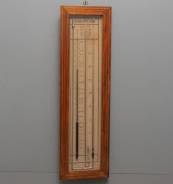 Franse barometer en thermometer met twee buizen, in eiken kast met ingelegde biezen, adres: Louis Lesecq à Estaires, Département du Nord, 99 × 28,5 cm