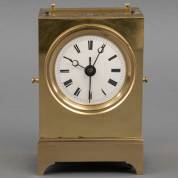 Messing tafelklok met geëmailleerde wijzerplaat, begin 20e eeuw, 23 × 12 × 8 cm