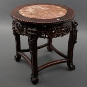 Chinees houten tafeltje met natuurstenen blad en gestoken vlinderdecor, 45 × Ø 45 cm