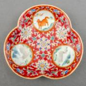 Chinees porseleinen pattipan met polychroom decor en in de medaillons drie geitjes, Qianlong gemerkt, 19e eeuw, Ø 14 cm