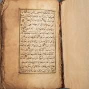 Arabisch handschrift, circa 200 bladen dubbelzijdig beschreven binnen een kader op papier, enkele versieringen in de marge, oude band -sterke watervlekken in de marges-