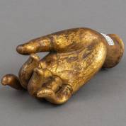 Verguld metalen hand van een Bodhisattva beeld, vermoedelijk China, 19e eeuw -wijsvinger gedeukt, pink met kleine breuk-, 13,5 × 7 cm