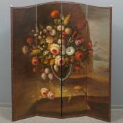 Vierslags kamerscherm, belijmd met schildering op doek: bloemstilleven in 17e-eeuwse stijl, 20e eeuw, 183 × 41 cm per deel