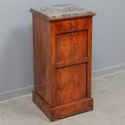 Mahoniegefineerd pokastje met natuurstenen blad, biedermeier -beschadiging op hoek, profielen langs bladrand onvakkundig gelijmd-, 87 × 42 × 42 cm