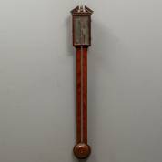 Stickbarometer in mahonie kast met ingelegde geblokte bies, tevens voorzien van alcoholthermometer met Fahrenheitschaal, adres: Anthony Gatty / Antonio Gatti, Reading, Engeland, regency, 96 ×14 × 5 cm