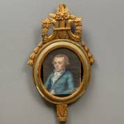 Pastel: portret van een man in lichtblauwe jas, niet gesigneerd, eind 18e eeuw, in rijk geornamenteerde vergulde ovale lijst, 86 × 50 cm