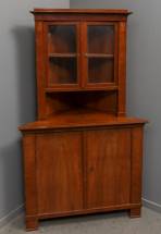 Notengefineerde hoekkast met beglaasde opstand, begin 20e eeuw -barst in ruitje-, 180 × 78 × 78 cm