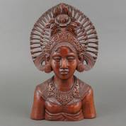 Gesneden houten buste: djanger danseres, gesigneerd A. Fatimah, Bali, midden 20e eeuw, hoogte 39 cm