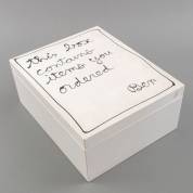 Gezamenlijk kunstwerk: 'This box contains the items you ordered (Contemporary Archaeology Pandora Part Two 1987)', met werken van Sophie Boursat, René Daniels, Klaas Gubbels, Sol Lewitt, Maarten Ploeg, Steef Roothaan, Reiner Ruthenbeck, Günter Tuzina, Ben Vautier en Robin Winters, diverse media, uitgeverij Publishing House Bebèrt, Rotterdam, oplage 80/150, 1986/87, herkomst: Collectie Galerie Jas, Utrecht -kist iets smoezelig aan buitenzijde, deukje in onderrand deksel-, 15 × 28 × 35 cm