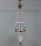 Glazen eierlamp met vaasvormig contragewicht en gesatineerd glazen rookvanger, circa 1800 -verstelmechanisme incompleet-