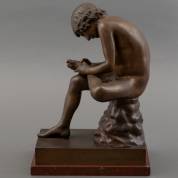 Bronzen beeld: 'Spinario', naar Romeins voorbeeld, gemerkt Musée du Louvre, op rood marmeren voet, 36 × 25,5 × 18,5 cm