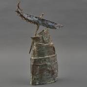 Piet Berghs (1948), abstract sculptuur met bootje, gepatineerd brons, gemonogrammeerd, 43 × 25 × 9 cm