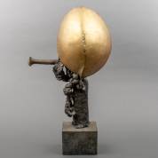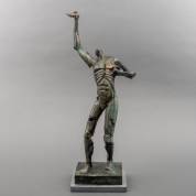 Mogelijk Paul Elshout (1949-2018), staande man met zijn uitgerukte hart in zijn opgeheven rechterhand, brons op natuurstenen basement, gemonogrammeerd P.E., hoogte inclusief basement 61 cm