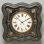 Grote zwartgelakte oeil de boeuf wandklok, Frankrijk, 19e/20e eeuw -defecten, sleutel aanwezig-, 73 × 73 × 15 cm