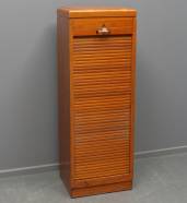 Eiken archiefkast met rolluik waarachter negen lades, jaren '20-'30 -gebruikssporen, rolluik iets stroef-, 130 × 46 × 37 cm