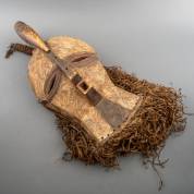 Houten kifwebe masker met vogel en raffia, Songye of Luba, Conga, vóór 1975, circa 73 × 36 × 25 cm