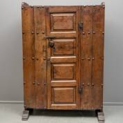 Eiken kast met paneeldeur, smeedijzeren nagels, hang- en sluitwerk, staand op slofpoten, naar 16e-eeuws voorbeeld, 19e/20e eeuw -slijtage-, 183 × 125 × 37,5 cm