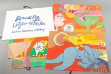 Corneille (1922-2010), map met vijf werken: 'Corneille Liljen og Festen, Galerie Moderne - Silkenborg', litho's 86/125, alle gesigneerd en gedateerd '84, herkomst: Collectie Galerie Jas, Utrecht, 51 × 67 cm