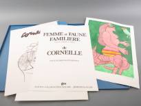 Corneille (1922-2010), map met tien werken: 'Femme et Faune Familière', vijf kleurengravures met vijf corresponderende zwart-wit gravures E/A 8/25, alle gesigneerd en gedateerd '77-'78, herkomst: Collectie Galerie Jas, Utrecht -bij één gravure met veel vlekjes in het papier, bij andere enkele vlekjes, map met slijtage en verfspatten-, 78 × 60 cm