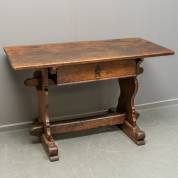 Eiken betaaltafel, het onderstel met regel, staand op slofpoten, voorzien van lade, 17e/18e eeuw -gebruikssporen-, 76 × 123 × 61,5 cm