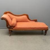 Mahoniegefineerde chaise longue met roze stoffen bekleding, 19e eeuw -gebruikssporen, kleine defecten-, 88 × 190 × 63 cm