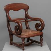 Mahonie kinderstoeltje met rotan zitting -vlekken in afwerking-, 52 × 38 × 39 cm