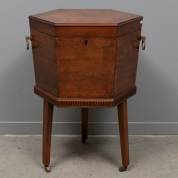 Octagonale mahonie wijnkoeler met zinken binnenbak, staand op drie poten met zwenkwieltjes, Engeland, 19e eeuw, 72 × 54 × 46 cm