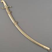 Mamelukkensabel met gegraveerde kling, messing pareerstang gedecoreerd met leeuwenkop, en ivoren heft, de schede eveneens gedecoreerd met leeuwenkoppen, circa 1850, vermoedelijk Nederlands, -enkele deukjes in schede, kopie CITES EU-certificaat bijgevoegd, geen uitvoer buiten de EU-, lengte inclusief schede 98 cm