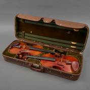 Twee violen, één draagt etiket van Jean Baptiste Vuillaume, maar niet van zijn hand, corpuslengte 35,5 cm, tezamen in een koffer