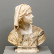 Prof. Giuseppe Bessi (1887-1922), buste van Jeanne d'Arc, marmer en albast, verso gesigneerd -krassen en chips-, 53 × 45 × 22 cm inclusief basement