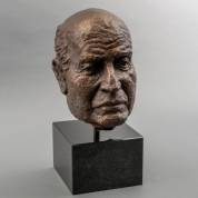 Bronzen buste: manshoofd, onduidelijk gesigneerd en gestempeld, 42 cm inclusief zwart natuurstenen basement