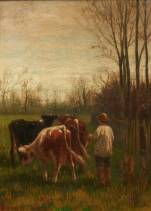 Willem Frederik Hulk (1852-1906), jongen hoedt zijn koeien, olieverf op doek, r.o. gesigneerd, 29 × 21 cm