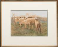 Geo Poggenbeek (1853-1903), schapen in de wei, aquarel, r.o. gesigneerd, 22 × 31 cm