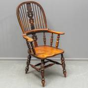 Grote en extra brede iepen Windsor stoel, de rugleuning met opengewerkt 'kerstboom'-decor, Engeland, midden 19e eeuw -gebruiksslijtage-, 117 × 69 × 67 cm