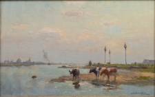 Bernard Antoine van Beek (1875-1941), koeien langs de waterkant, olieverf op doek, r.o. gesigneerd, 45 × 29 cm