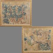 Paar wandtapijtfragmenten in lijst, Frankrijk of België, 17e eeuw, 40 × 50 cm