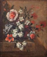 Navolger Jean-Baptiste Monnoyer (1636-1699), bloemstilleven, olieverf op doek, l.o. gesigneerd op plint, 17e eeuw -signatuur van later datum, gedoubleerd-, 48 × 40 cm