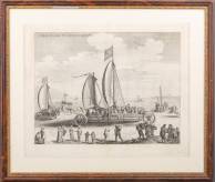 Gravure: De zeilwagen van Simon Stevin, l.b. getiteld 'Currus veliferi Ill.mi Pr. Mauritii Nassouii', 17e eeuw, 52 × 63,5 cm