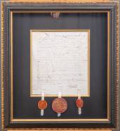 Ingelijst testament met drie lakzegels, omgeving Utrecht, 1750, 30 × 27 cm