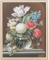 Mogelijk Sebastian Wegmayr (1776-1857), bloemstilleven in glazen vaas met kever, rups, en twee vlinders, gouache op papier, op plaatje toegeschreven aan Cornelis van Spaendonck (1756-1840) -klein beetje verfverlies-, 32 × 25,5 cm
