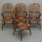Vier iepen Windsor-stoelen, Engeland, 19e eeuw, zithoogte circa 45 cm
