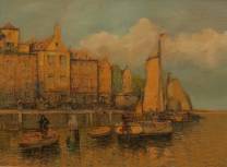 Adolf le Comte (1850-1921), vissersboten in de haven, olieverf op doek, r.o. gesigneerd -beetje verfverlies langs de randen-, 40 × 55 cm