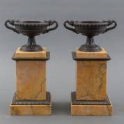 Paar bronzen tazza's op Siena-marmeren basementen, 19e eeuw, 28 × 17 × 12 cm